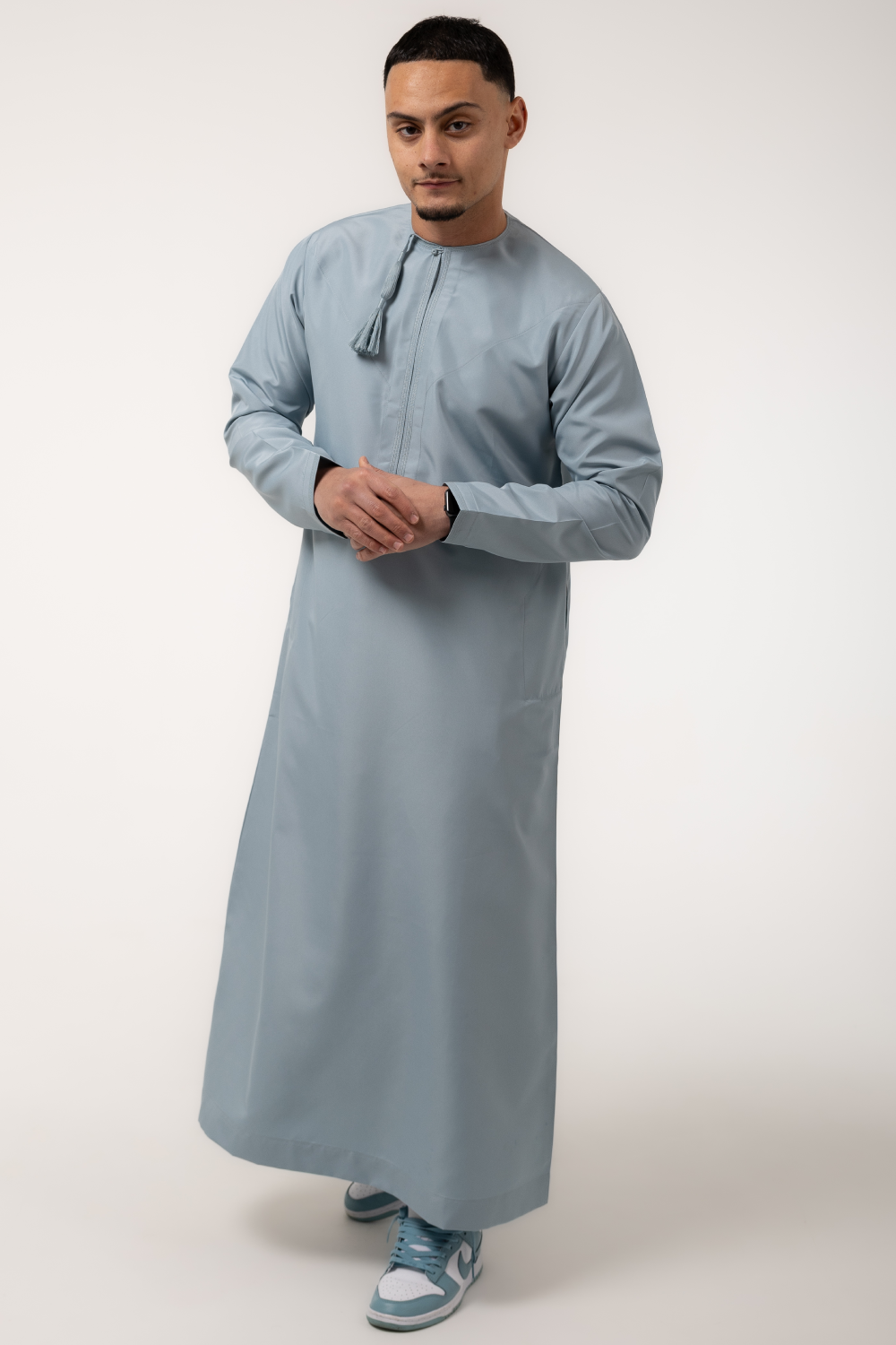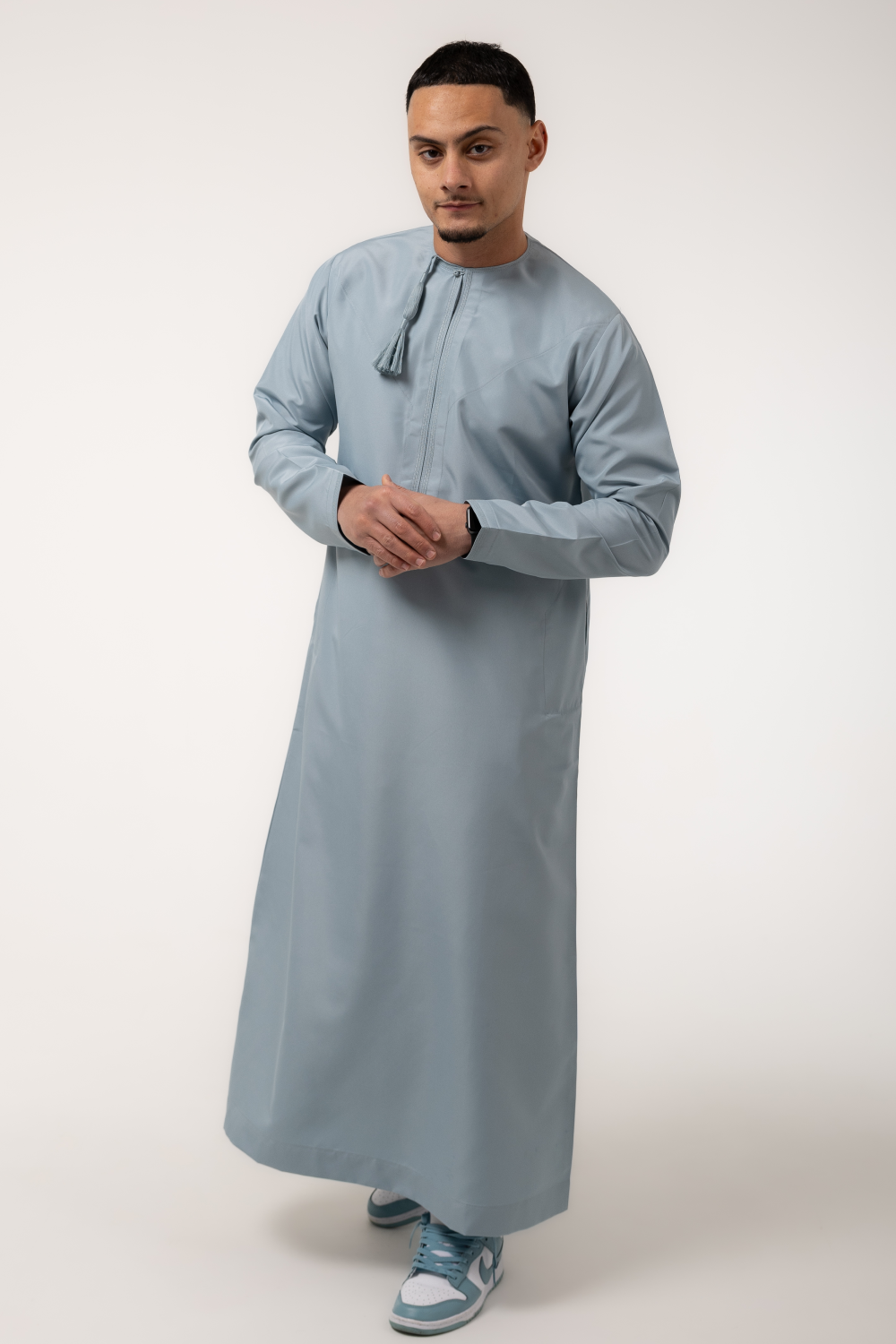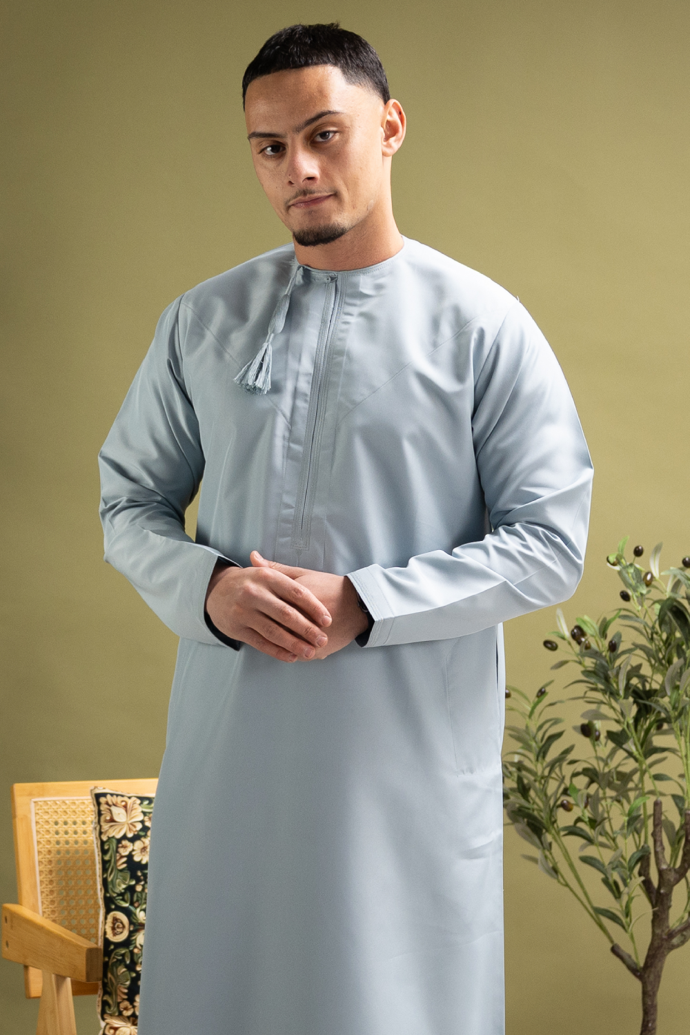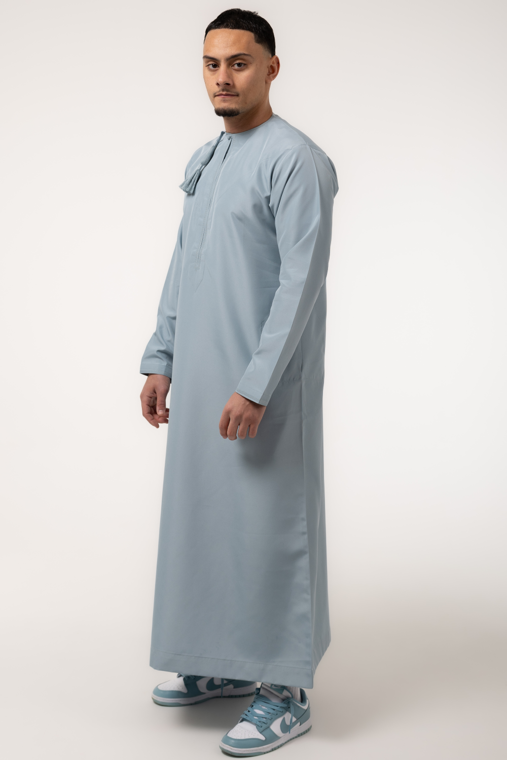 Fajr Sky reflects the clarity of early morning light, bringing a refreshing softness to traditional wear. This sky blue tone evokes renewal and calm, making it ideal for both spiritual moments and celebratory gatherings.
